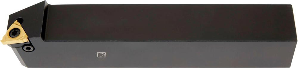 Schraubgeklemmte Gewindedrehhalter mit 1.5° Helixwinkel zum spannen einer dreieckigen Wendeschneidplatte mit einem Innenkreisdurchmesser von 12.7mm (Bezeichnung TN 22ER.. ) · rechte Standardausführung mit Zylinderschaft · 25mm Werkzeughöhe 25mm Breite und 150mm Gesamtlänge zum Außengewinden · einstechen von Sicherungsringen · und einstechen von O-Ringen
