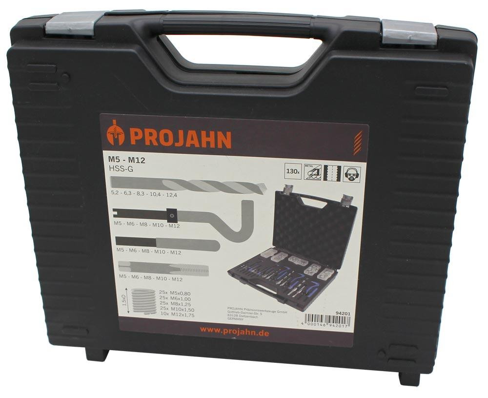 Praktische Satz-Zusammenstellung zur Reparatur und Instandsetzung von Gewinden ∙ Komplett mit Spiralbohrern HSS-G, Gewindebohrer HSS-G, Einbauwerkzeugen, Zapfenbrechern und je 25 St. Gewindeeinsätze 1,5 x D (M12 je 10 St.) ∙ Lieferung in robustem Kunststoff-Koffer