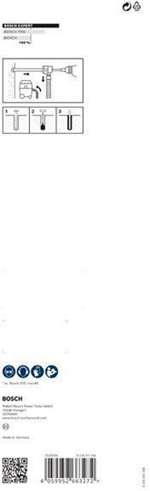Bohren in Stahlbeton mit verbesserter Staubreduzierung · hocheffizienter Abtransport von Staub mit Bosch Particle Control · durchdringt Stahlbeton mit einem Voll-Carbide-Kopf mit 4 Schneidern · bohrt Löcher und entfernt gleichzeitig Staub - beschleunigt und vereinfacht die Installation chemischer Dübel · für Bauarbeiter und Installateure entwickelt, die Löcher für chemische Dübel bohren müssen · mit 4-Schneider-Vollhartmetallkopf und einem robusten Staubsaugerrohr · mit SDS Clean max Anschluss, der für alle SDS Clean max-8X Bohrer geeignet und ebenso einfach zu montieren wie abzunehmen ist · bei Verstopfung leicht zu reinigen: einfach das Absaugrohr vom Bohrer abnehmen · neue Technologie zur Staubreduzierung, mit der Löcher für chemische Dübel schneller vorbereitet werden können
