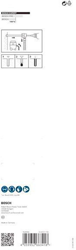 Bohren in Stahlbeton mit verbesserter Staubreduzierung · hocheffizienter Abtransport von Staub mit Bosch Particle Control · durchdringt Stahlbeton mit einem Voll-Carbide-Kopf mit 4 Schneidern · bohrt Löcher und entfernt gleichzeitig Staub - beschleunigt und vereinfacht die Installation chemischer Dübel · für Bauarbeiter und Installateure entwickelt, die Löcher für chemische Dübel bohren müssen · mit 4-Schneider-Vollhartmetallkopf und einem robusten Staubsaugerrohr · mit SDS Clean max Anschluss, der für alle SDS Clean max-8X Bohrer geeignet und ebenso einfach zu montieren wie abzunehmen ist · bei Verstopfung leicht zu reinigen: einfach das Absaugrohr vom Bohrer abnehmen · neue Technologie zur Staubreduzierung, mit der Löcher für chemische Dübel schneller vorbereitet werden können