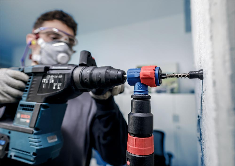 Bohren und Absaugen in einem Arbeitsgang ∙ Hammerbohrer mit 4-Schneiden-Hartmetallkopf und innenliegendem Absaugkanal ∙ Hochbeständige Bohrspitzenverbindung durch spezielles Schweißverfahren ∙ SDS Clean plus Anschluss verbindet Bohrer mit Staubsauger ∙ Ideal bei Arbeiten Überkopf oder Dübel-/Ankerbefestigungen