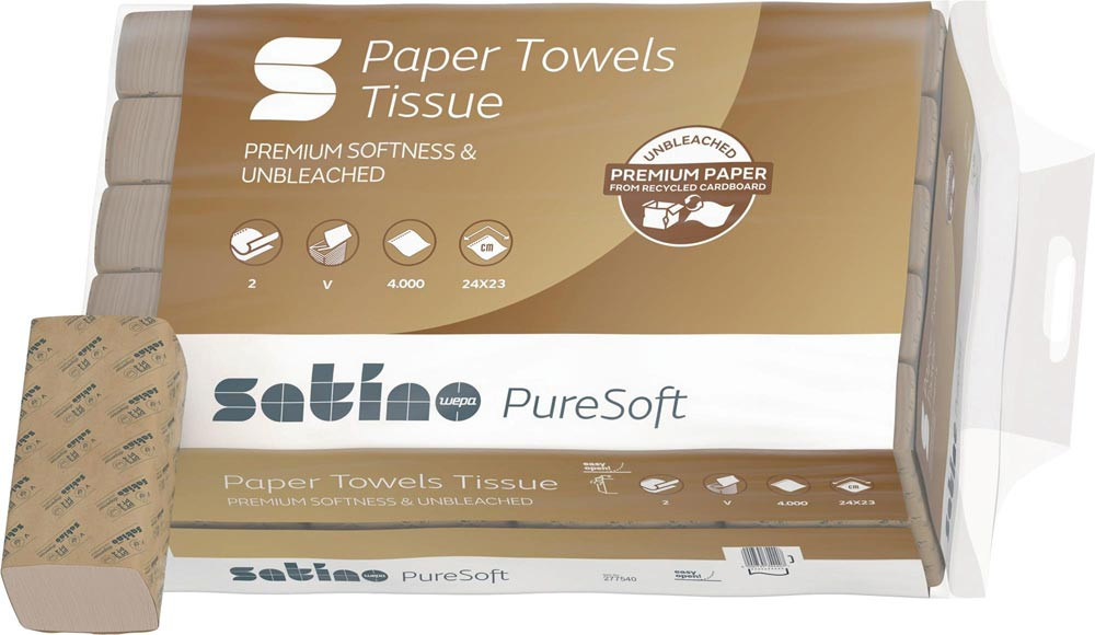 Handtuchpapier Satino PureSoft 277540 2-lagig soft beige L.ca.230 mmxB.ca.240 mm passend für 9000469080 Karton