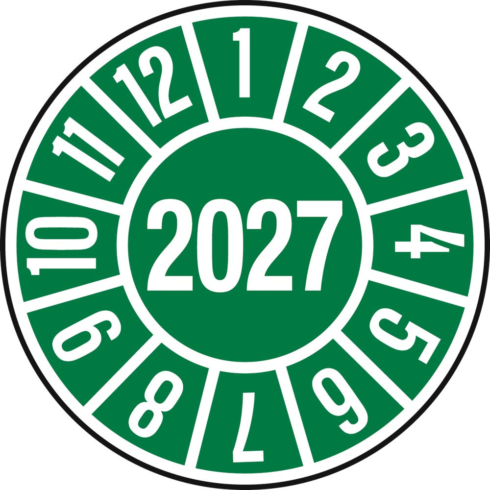 Hinweisschild, Plakette, grün, Jahr 2027, PVC-Folie, Durchm. 35 mm, VE 10 Stück, Mindestabnahme 10 VE