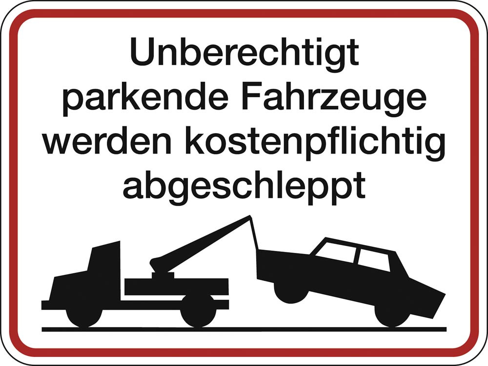 | Ausführung Hinweisschild | Unberechtigt parkende Fahrzeuge werden kostenpflichtig abgeschleppt |