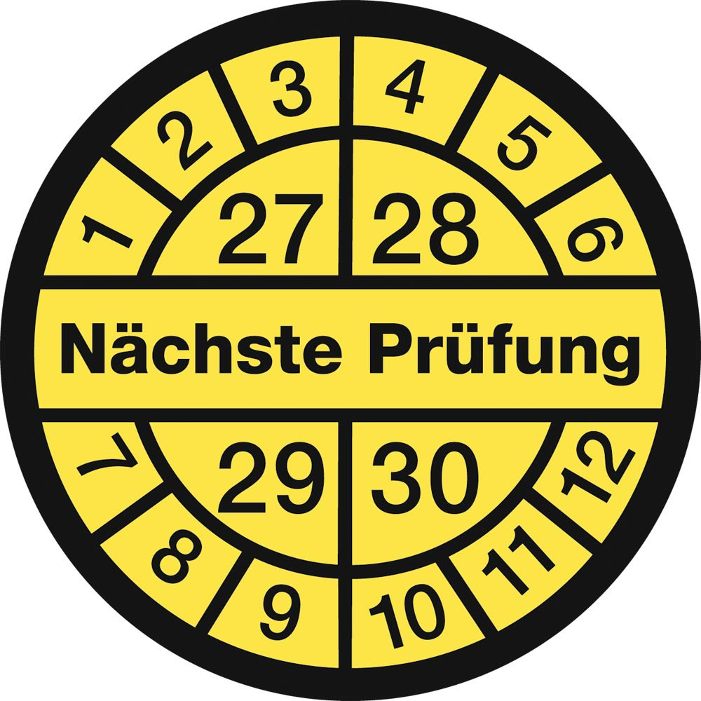 Hinweisschild, nächste Prüfung 2027, PVC-Folie, gelb, Durchm. 12,5 mm, VE 10 Stück, Mindestabnahme 10 VE