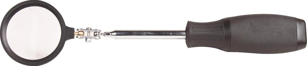 Inspektionswerkzeug mit 5-fach-Vergrößerungslupe und Teleskopgriff (Ausziehbar 70-500 mm) mit großen, dreieckförmigen Griffen im Soft-Touch Design für Komfort und Griffigkeit. Mit einer Gesamtlängebis maximal 720 mm bietet es viele Einsatzmöglichkeiten. Anti-Twist-Teleskop.