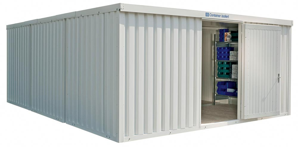 Isolierter Lagercontainer, 3 Module, montiert, mit Holzfußboden, RAL 9002 grauweiß, BxTxH 5090x6525x2420 mm