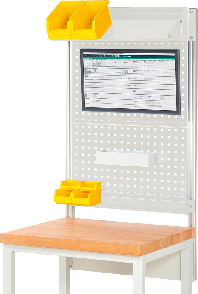 Komplettaufbau für Werkbank B 750 mm mit Ablage, 2 x Lochplatte H 450 mm, Montageadapter, Halteschiene, RAL 7035 E6490828