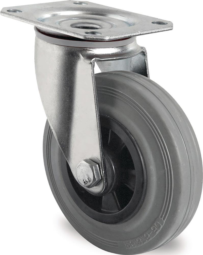 Lenkrolle Rad-Ø 125 mm Tragfähigkeit 100 kg mit Anschraubplatte Polypropylen Vollgummi grau