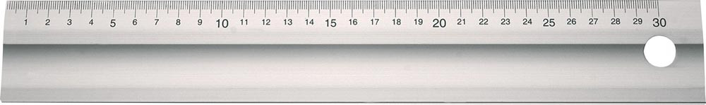 Skala gelasert · aus massivem Aluminium · mit Griffmulde · silberfarbig eloxiert · mit mm-Skalierung