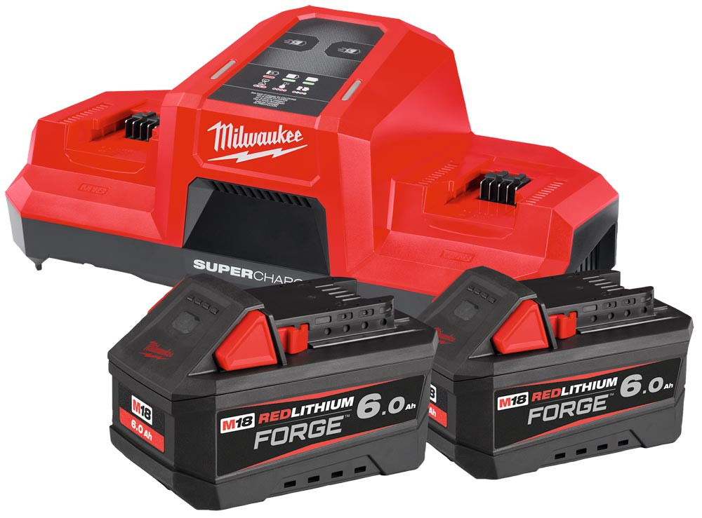 MILWAUKEE Starter-Set 18 V FORGE 2 x 6,0 Ah Akku-Pack u. Zweifach Schnellladegerät