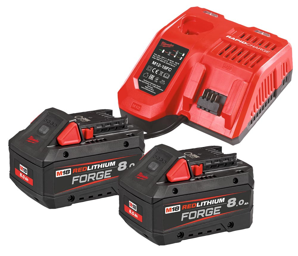 MILWAUKEE Starter-Set 18 V FORGE 2 x 8,0 Ah Akku-Pack u. Schnellladegerät