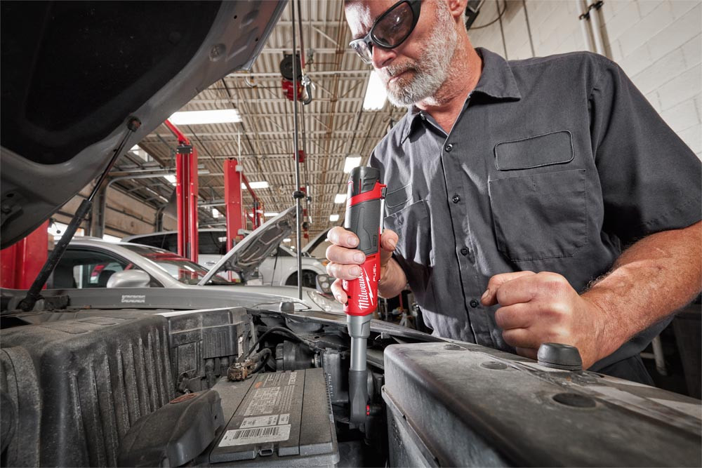 Ausführung: Akku-Hochgeschwindigkeitsratsche für gesteigerte Produktivität für den professionellen Einsatz ∙ Das 19 mm Kopfdesign mit niedrigem Profil und zusätzlichen 82 mm Länge ermöglichen Benutzern einen besseren Zugang auf engstem Raum ∙ Die branchenführende FUEL ™ Technologie in Kombination mit einem verstärkten Mechanismus und einem Getriebegehäuse aus Feingussstahl bietet dem Anwender eine längere Lebensdauer ∙ Der Schalter mit variabler Geschwindigkeit bietet ultimative Kontrolle über das Werkzeug ∙ Premium Gummiummantelung widersteht korrosiven Materialien und bietet erhöhten Komfort bei der Verwendung ∙ LED Licht zur Beleuchtung des Arbeitsbereiches ∙ Ladestandanzeige ∙ 100 % systemkompatibel mit dem MILWAUKEE® M12 ™ Produktprogramm