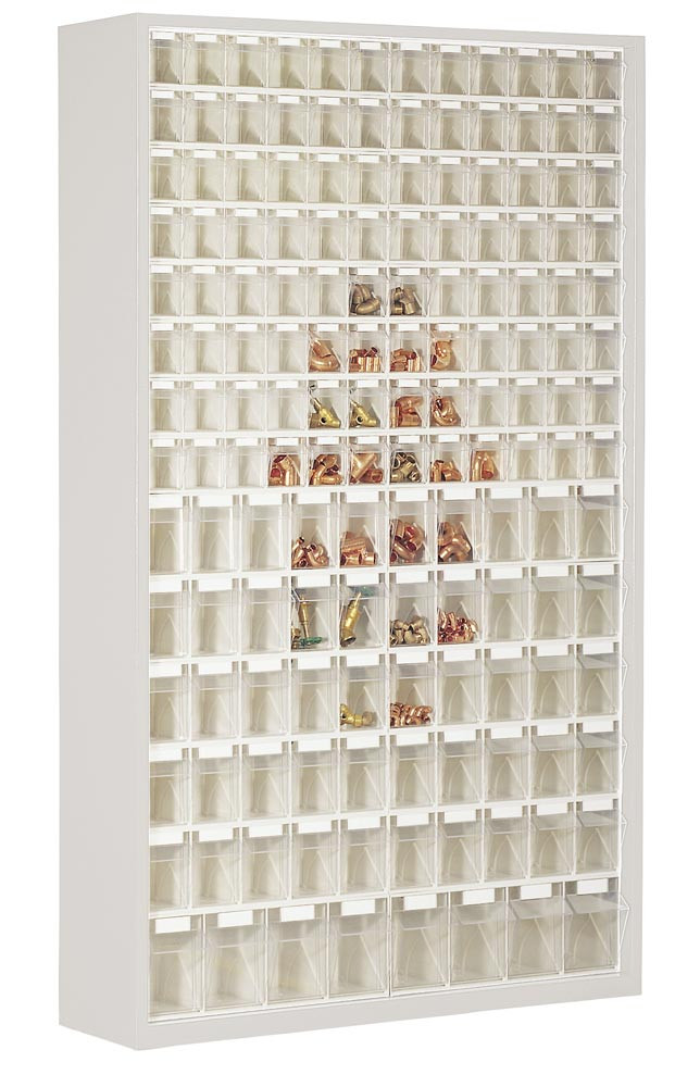 Magazinschrank, BxTxH 1270x250x2000 mm, 154 Kästen, 96xGr. 6, 50xGr. 5, 8xGr. 4, Gehäusefarbe RAL 7035 lichtgrau