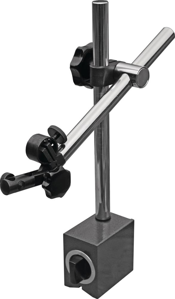 Präzisionsausführung · ein- und ausschaltbarer Magnetfuß mit prismatischer Sohle · Standsäule und Querarm verchromt · mit fester Klemmung im Kreuzstück · Messuhraufnahme 8 mm H7 · Aktionsradius 180 mm