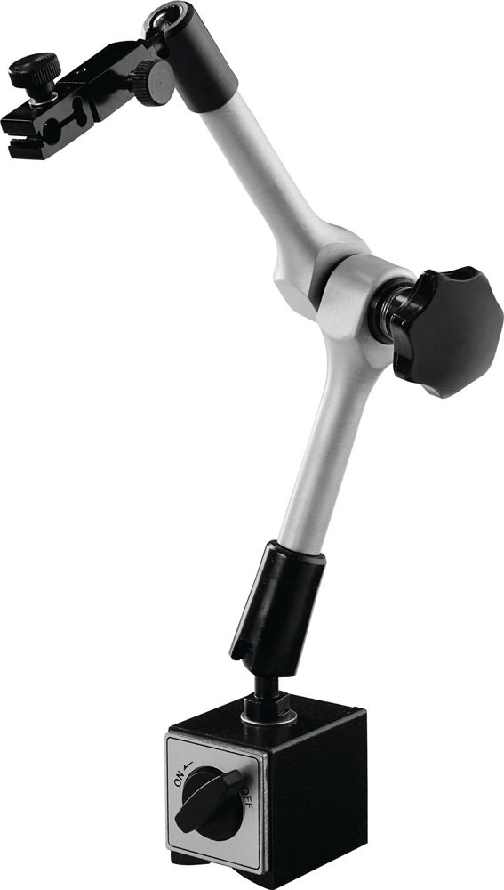 mit Gelenkarm · mit mechanischer Zentralklemmung und Feineinstellung · große Beweglichkeit bei hoher Spannkraft mittels eines Spanngriffes · abschaltbarer Magnetfuß mit prismatischer Sohle · Messuhraufnahme 8 mm H7