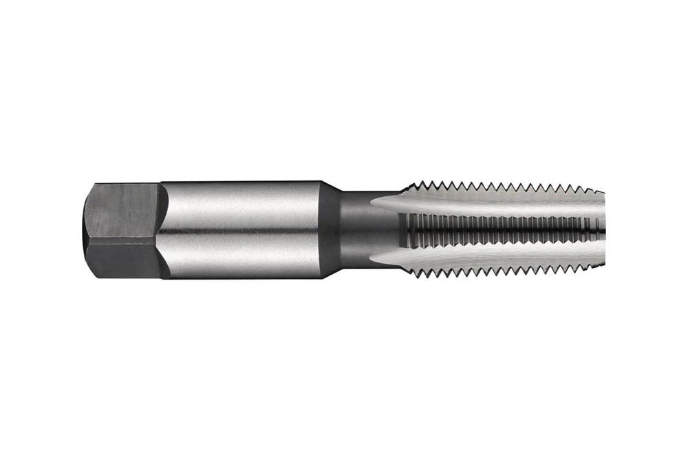 Gerade genuteter Gewindebohrer · Anschnittform C mit 2-3xP Gewindeanschnitt · kegeliges Rohrgewinde für Kraftstoffleitungen NPTF 3/8″ mit 18 Gängen / Inch und Normal Toleranzklasse · Abmessungen nach ~ANSI B94.9 Standard mit 17.8mm Schaft und 13.5mm Vierkantantrieb · HSS mit blanker Oberfläche 1.5xD Durchgangs- und Sacklochgewinde in Baustahl und Kohlenstoffstahl und Kupfer oder Kupferlegierungen