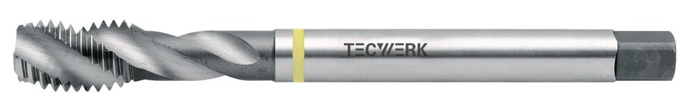 HSS-Co · Form C · Typ AL · Gelbring · mit Rechtsdrall 45° · Flanken hinterschliffen · metrisches ISO-Gewinde · DIN 13 Blatt 1 · Toleranzfeld ISO2 (6H) · für Sacklochgewinde · für langspanende, weiche Werkstoffe
