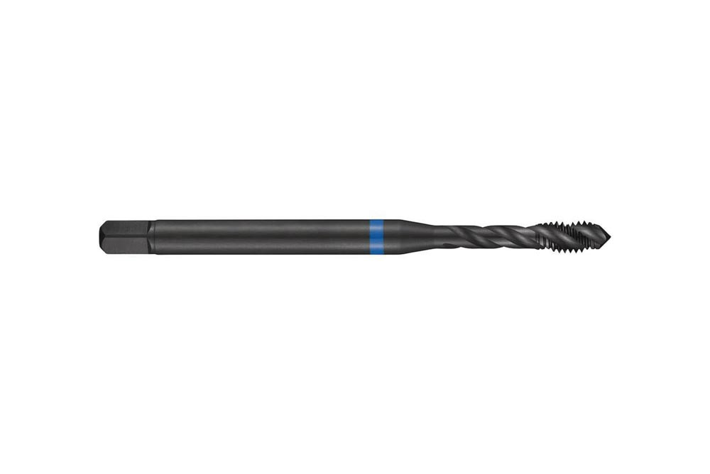 Spiral genuteter Gewindebohrer Blue Shark · Anschnittform C mit 2-3xP Gewindeanschnitt · Britisches Standardrohrgewinde G 1/2″ mit 14 Gängen / Inch und Normal Toleranzklasse · Abmessungen nach DIN 5156 Standard mit 16.0mm Schaft und 12.0mm Vierkantantrieb · HSSE-PM mit vaporisierter Oberfläche und 40° Helixwinkel 2xD Sacklochgewinde in Edelstahl
