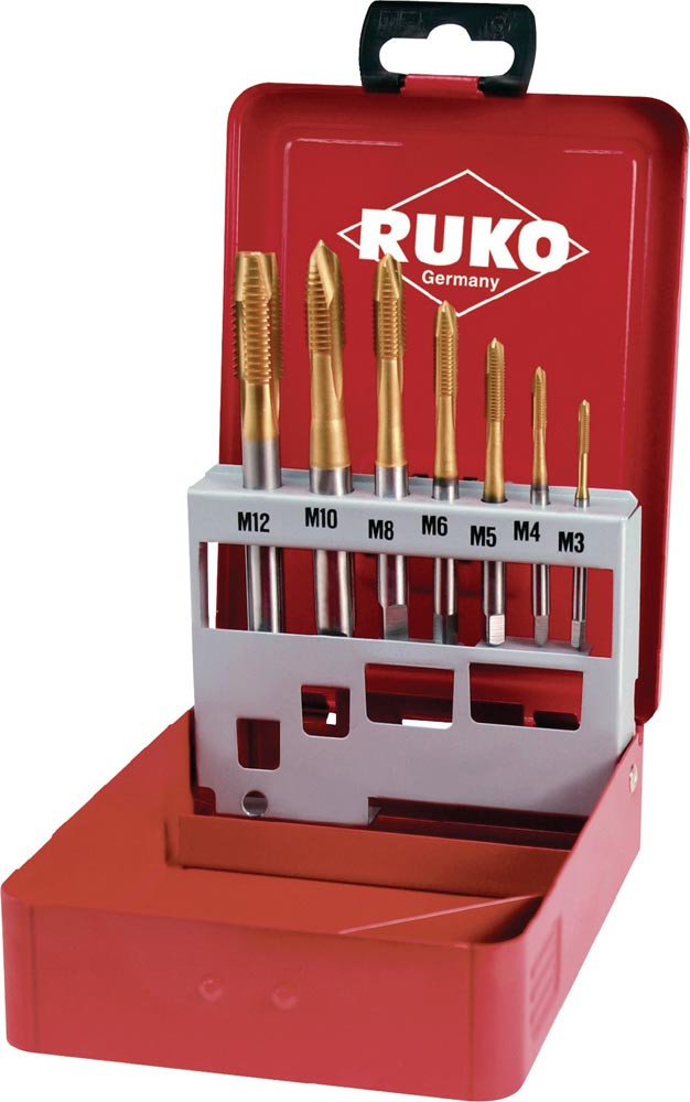 Maschinengewindebohrersatz DIN 371/376 B M3-M12 7 teilig HSS TiN Metallkassette