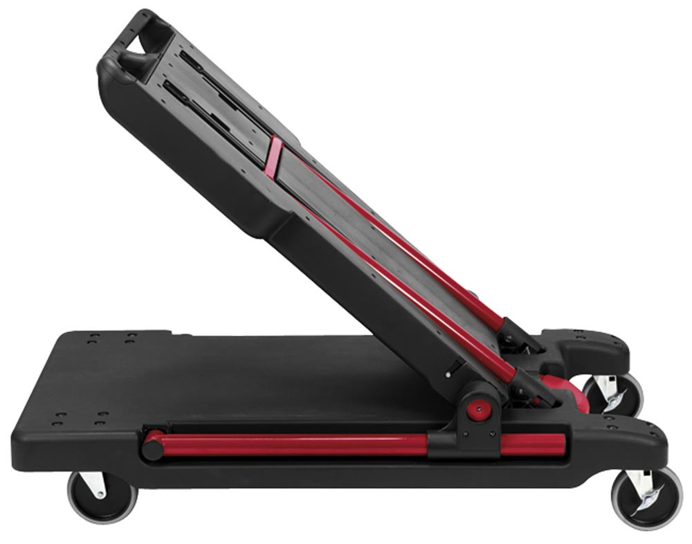· Einfacher Umbau per Knopfdruck von einem Tischwagen zu einem Plattformwagen · Zusammenklappbar und somit platzsparend zu verstauen ·Gefertigt aus Polypropylen und Stahlrohr · Obere Ladefläche mit Rand verhindert das Herabfallen des Ladegutes · 2 Lenk- und 2 Bockrollen · Lenkrollen mit Radfeststellern · TPE-Bereifung (Thermoplastisches Elastomer)