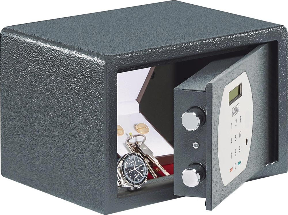 robuster einwandiger Korpus · Tür doppelwandig · Verstärkte Riegelbolzen · Aufbohrschutz · für Wand- und Bodenbefestigung vorgerichtet (inkl. Befestigungsmaterial) · ideal für den Einbau in Schränke und andere Möbelstücke