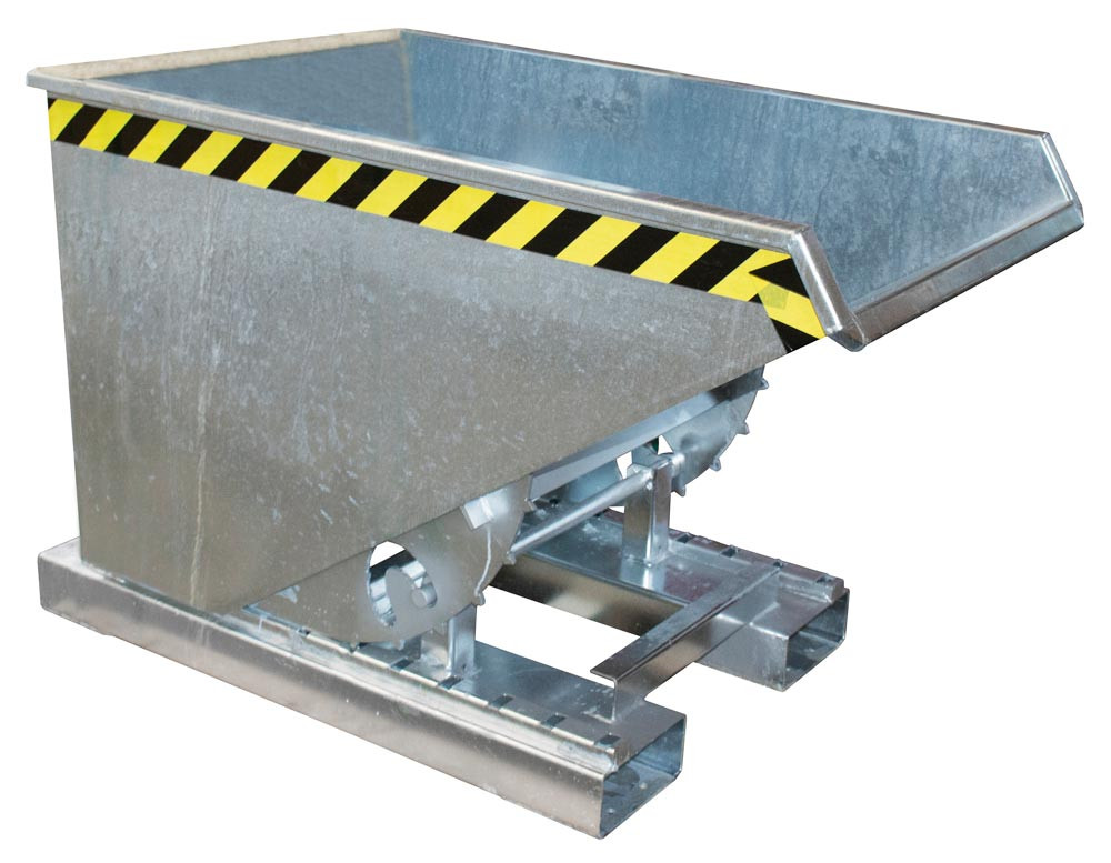 Mulden-Selbstkipper mit Abrollsystem, umlaufender Rand, LxBxH 1260x770x835 mm, Vol. 0,3 cbm, Traglast 750 kg, verzinkt