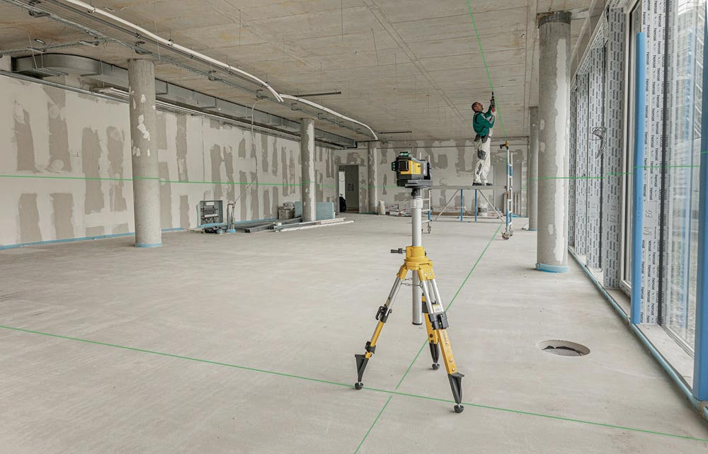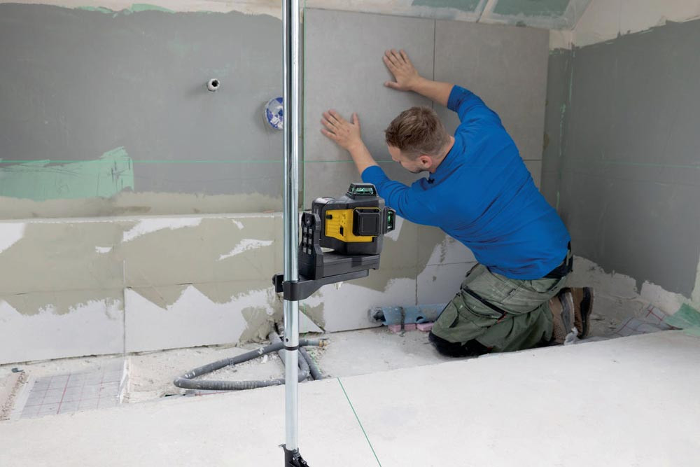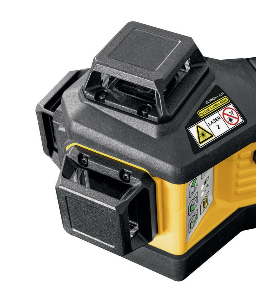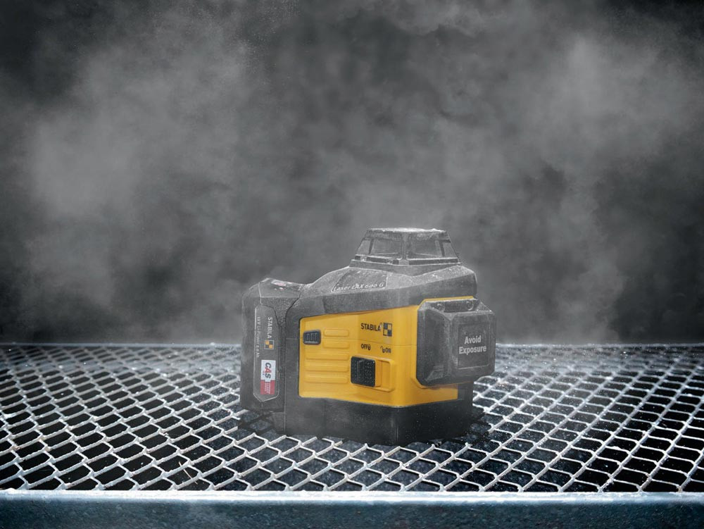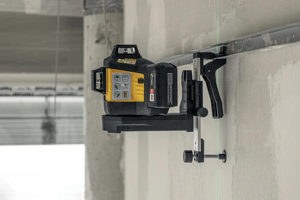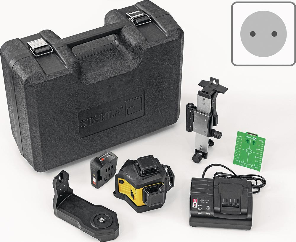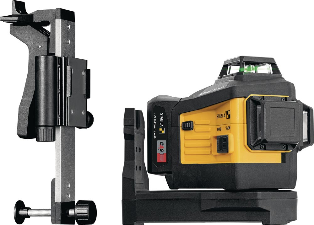 CAS-12-V akkubetriebener Laser mit grünen 3 x 360°-Linien · direktes Arbeiten auf scharfen, optimal sichtbaren Linien dank GREENBEAM-Technologie bis 40 m · zwei rechtwinklig zueinanderstehende vertikale Linien für präzise Layout-Arbeiten, ein Lot nach oben und unten sowie eine Horizontal-Linie für exakte Höhenübertragungen · wasser- und staubdicht nach IP65 · inklusive Universal- und Wandhalterung