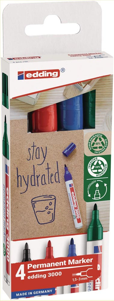 Permanentmarker-Set edding 3000 schwarz/rot/blau/grün Strichbreite 1,5-3 mm Rundspitze