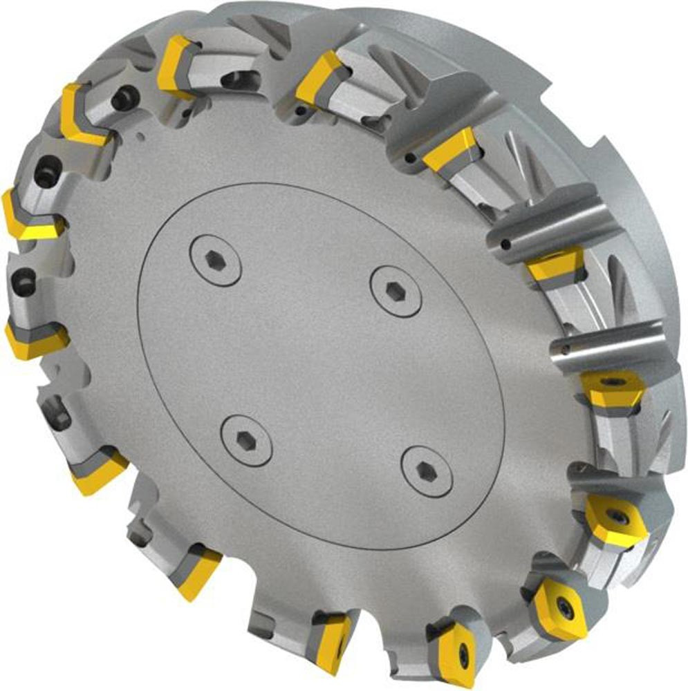 Planfräser mit positv/negativer Geometrie welche 14 aus SDET 13T3.. · SDMT 13T3.. oder XDET 13T3.. einseitige Wendeschneidplatte · Schneiddurchmesser 160mm bis maximal 172,8mm mit 45° Anfahrwinkel und 40mm Bohrung gemäß DIN 8030-C · 63mm funktional und · durchgehende Kühlung und ungleicher Teilung zum Planfräsen und Entgraten mit einer maximalen Schnitttiefe von 6,4mm