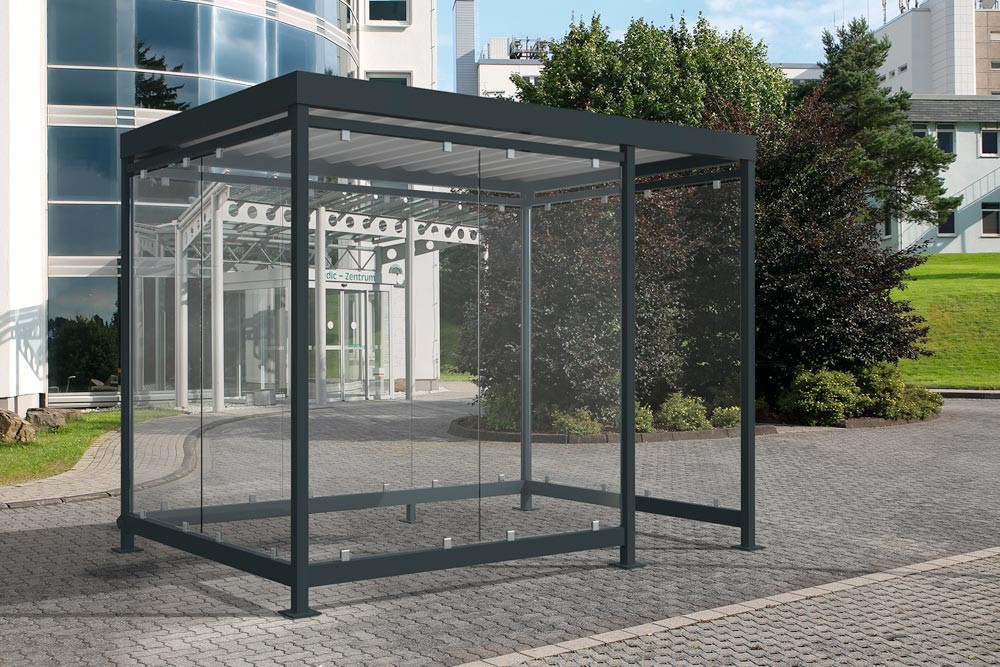 Raucherunterstand, BxTxH 3180x2165x2510 mm, lichte Höhe 2360 mm, ca. 6-7 Personen, farbbeschichtet RAL nach Wahl, fertig montiert
