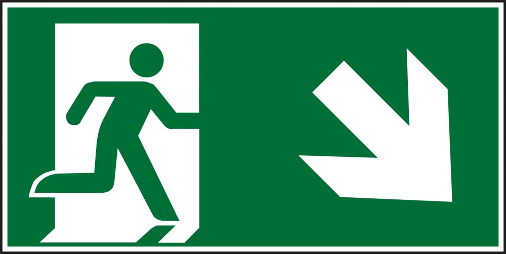 | Ausführung Rettungswegschild | Fluchtweg abwärts rechts |