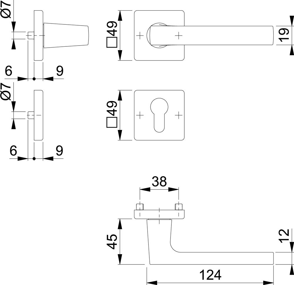 Rosettengarnitur Dallas M1643/843KV/843KVS Messing F96-1-R quadratisch SK/OL DIN links / rechts D/D E6446965