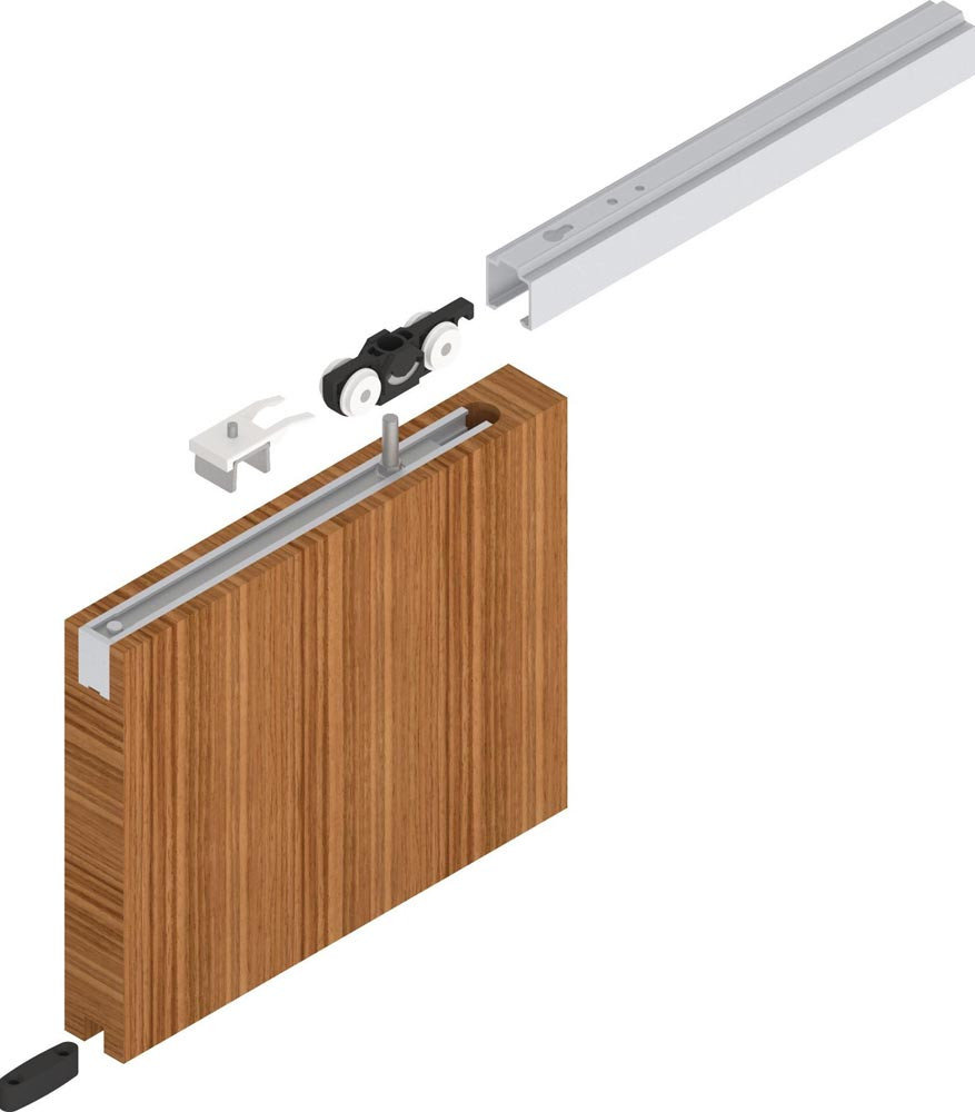 Komplettset · für einflügelige Holzschiebetüren mit minimaler Einbauhöhe bis 80 kg Flügelgewicht und Türstärken ab 35 mm · Rollapparate mit Kugellager
