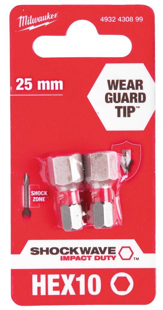 Ausführung: Aus spezialgehärtetem Stahl ∙ Mit lasergehärteter "WEAR GUARD TIP™ Bitspitze für präzise Passgenauigkeit und längere Lebensdauer ∙ Flexible SHOCK ZONE™ verringert die Belastung auf die Bitspitze und dadurch die Bruchgefahr und absorbiet die Schlageinwirkung ∙ Antrien 1/4" Sechskant nach DIN 3126-C 6,3 ∙Pack `a 2 Stück