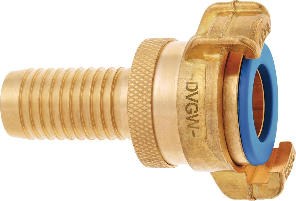 mit Tülle und Rippenprofil ifür die Schellen- und Presshülseneinbindung · die Kupplung besteht aus bleifreiem Messing (CW508L-DW) mit einer blauen EPDM-Dichtung ausgestattet für geprüfte Trinkwasserhygiene · DVGW-Zertifizierung (DW-0310BT0218) · Betriebsdruck 40 bar, Vakuumbeständigkeit bis 10 m Wassersäule · Temperatureinsatzbereich von -10 °C bis +85 °C · Klauenabstand 40 mm ermöglicht eine problemlose Kombination mit anderen GEKA plus Komponenten · für Einsatzbereiche: Lebensmittelindustrie, Garten- und Outdoorinstallationen, öffentliche Veranstaltungen sowie Anwendungen mit chlorhaltigem Wasser · die verwendeten Materialien erfüllen bereits heute die künftigen gesetzlichen Anforderungen für den Einsatz in der Trinkwasserversorgung