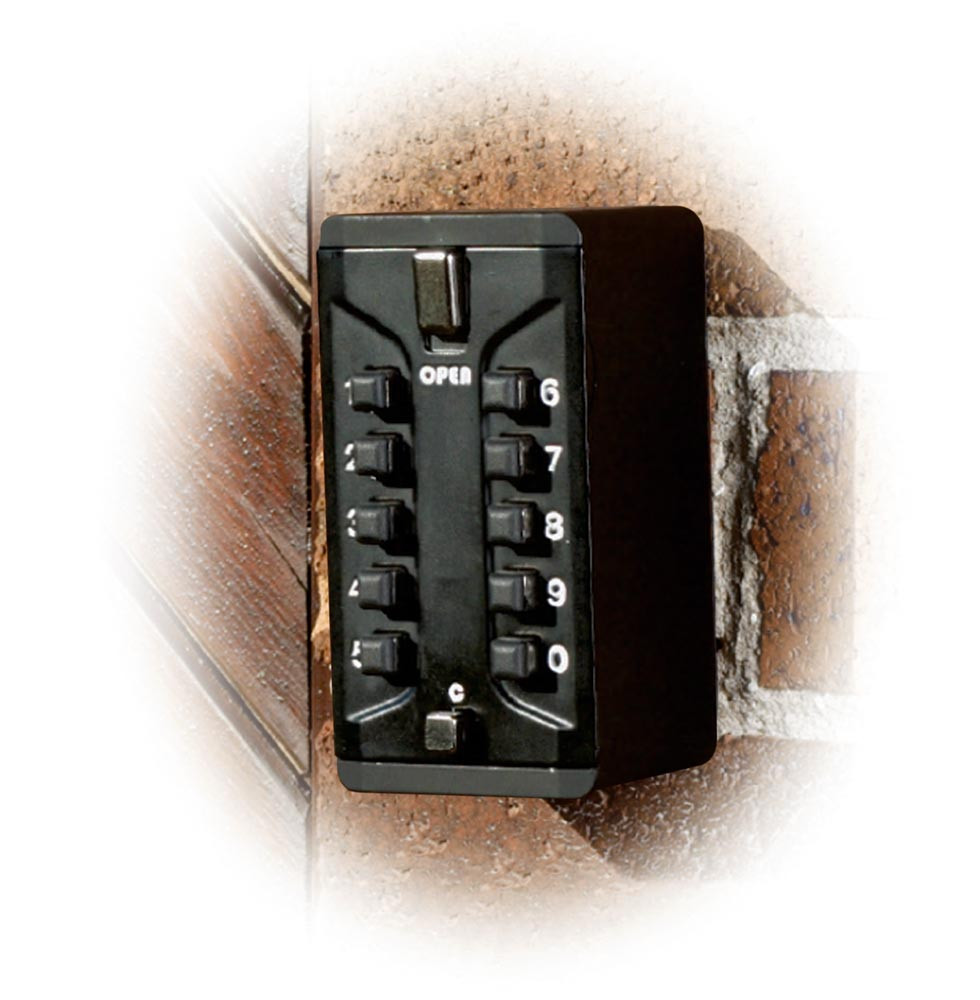 · Für die sichere Aufbewahrung von Türschlüsseln, Autoschlüsseln etc. · Leicht zu bedienendes Zahlenkombinationsschloss · Für die Wandverankerung vorbereitet · Inkl. wasserdichter Wetterhaube und Befestigungsmaterial · Schwarz/silber