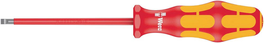 Wera VDE-Schraubendreher mit mehrkomponentigem Kraftform Plus Griff für schnelles und schonendes Arbeiten: Harte Griffzonen für hohe Arbeitsgeschwindigkeit · während weiche Griffzonen hohe Drehmomentübertragung garantieren. Stückprüfung bei 10.000 V für sicheres Arbeiten bei der zugelassenen Spannung von 1.000 V. Die Spitze von Wera Lasertip-Schraubendrehern wird mit Laserstrahlen mikroskopisch fein aufgeraut. Diese raue Oberfläche ″beißt″ sich förmlich im Schraubenkopf fest. Das unbeabsichtigte Herausrutschen gehört der Vergangenheit an. Take it easy Werkzeugfinder mit Farbkennzeichnung nach Profilen und Größenstempelung - zum einfachen und schnellen Finden des benötigten Werkzeugs. Der Sechskantabrollschutz verhindert lästiges Wegrollen am Arbeitsplatz. Vorteile: Isolierte Klingen für sicheres Arbeiten bis 1.000 Volt. Harte Griffzonen für hohe Arbeitsgeschwindigkeit · weiche Griffzonen für hohe Drehmomentübertragung. Mit Werkzeugfinder Take it easy: Farbkennzeichnung nach Profilen und Größenstempelung. Mit Sechskantabrollschutz gegen Wegrollen. Konische Schneide · Lasertip-Spitze. Wera VDE-Schraubendreher mit mehrkomponentigem Kraftform Plus Griff für schnelles und schonendes Arbeiten: Harte Griffzonen für hohe Arbeitsgeschwindigkeit · während weiche Griffzonen hohe Drehmomentübertragung garantieren. Stückprüfung bei 10.000 V für sicheres Arbeiten bei der zugelassenen Spannung von 1.000 V. Die Spitze von Wera Lasertip-Schraubendrehern wird mit Laserstrahlen mikroskopisch fein aufgeraut. Diese raue Oberfläche ″beißt″ sich förmlich im Schraubenkopf fest. Das unbeabsichtigte Herausrutschen gehört der Vergangenheit an. Take it easy Werkzeugfinder mit Farbkennzeichnung nach Profilen und Größenstempelung - zum einfachen und schnellen Finden des benötigten Werkzeugs. Der Sechskantabrollschutz verhindert lästiges Wegrollen am Arbeitsplatz.