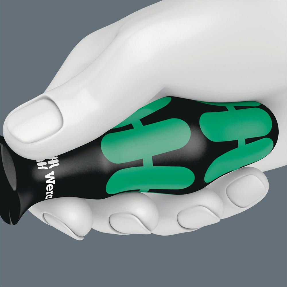 mit 1-Komponenten-Griff · Klinge aus Molybdän-Vanadium-Stahl nicromatt mit Black Point Spitze und Kugelkopf · (ermöglicht das Schrauben bis zu einem Winkel von 20°) · ohne Größenleit-/Take it easy Toolfinder System
