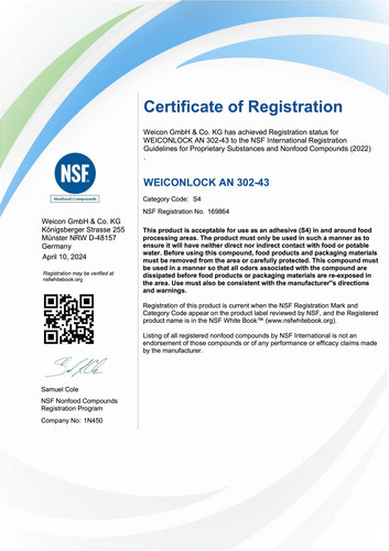 mittelfest · mit DVGW- und TZW-Zulassung für den Trinkwasserbereich · normal demontierbar · höherviskos (2.000-7.000 mPa.s) · Spaltüberbrückung: max. 0,25 mm · Gewindegröße: bis M 36 · Losbrechmoment : 17-22 Nm (ermittelt an Schrauben M 10, Qualität 8.8, Mutternhöhe 0,8.d) · handfest nach 10-20 Min. (bei Raumtemperatur) · endfest nach 1-3 Std. (bei Raumtemperatur) · temperaturbeständig von -60 °C bis +200 °C · KTW-Prüfung (Technologiezentrum Wasser TZW Karlsruhe, Prüfstelle Wasser)