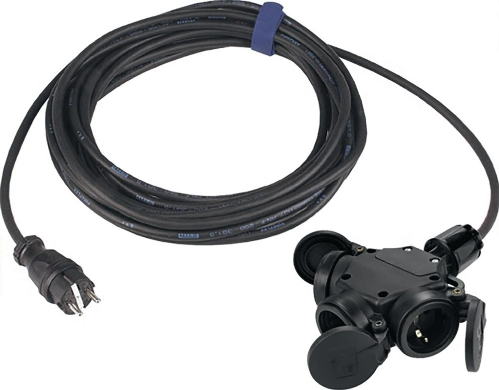 Schutzkontaktverlängerung 16 A 250 V 3-Wege-Kupplung 3 x 1,5 mm 10 m H07RN-F schwarz IP44 E6016206