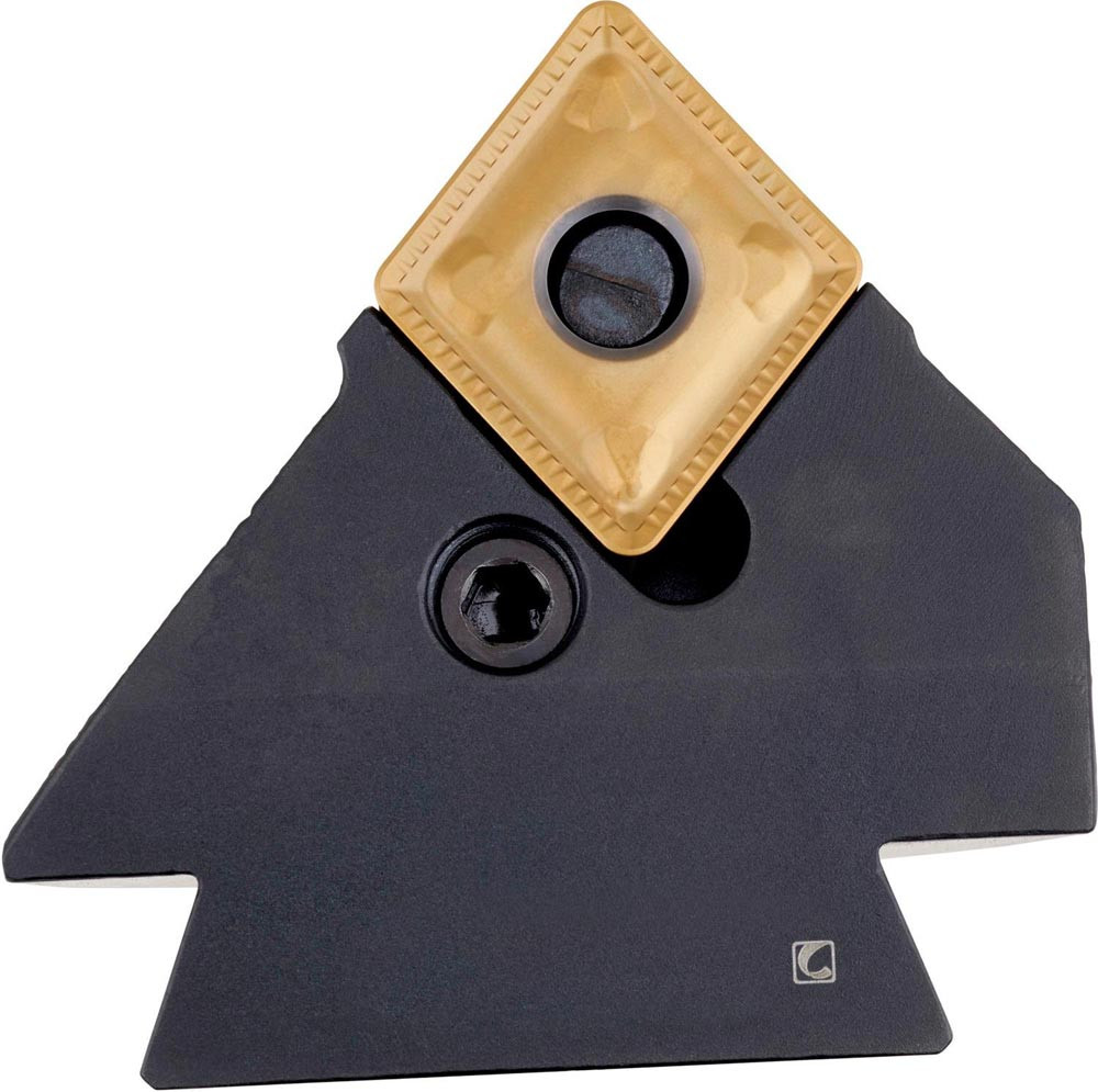 Modular Drehsystem mit Knieheblklemmung zum spannen von 80° Rhombus negative Wendeschneidplatten mit einem Innenkreisdurchmesser von 25.4mm · 9.52mm Dick (ISO Bezeichnung CN.. 2509.. ) · zur Montage mit DHKR .. für rechte Ausführung zum 95° Stirn-und Längsdrehen mit abgesetzem Schaft für Kegeldrehen · Stirndrehen mit und ohne Schulter und Längsdrehen mit und ohne Schulter