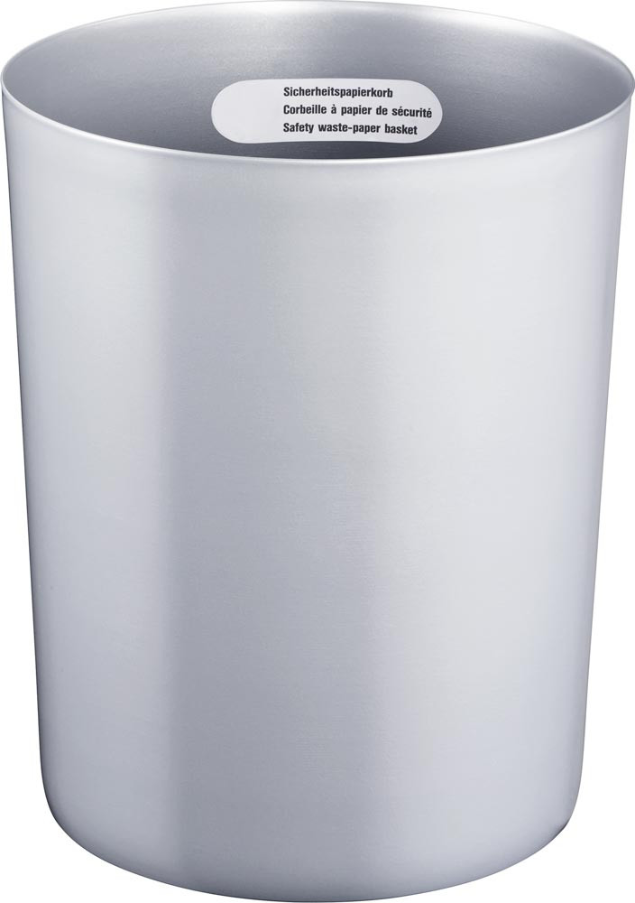 Sicherheits-Papierkorb, Kunststoff schwer entflammbar, Volumen 13 l, Durchm.xH 250x300 mm, silber, VE 5 Stück E1989291