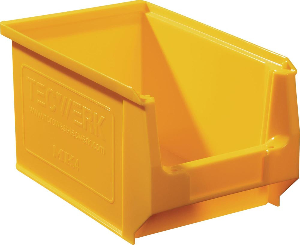 aus hochschlagfestem Polyethylen · stabile, stapelbare Mehrzweckkästen · einhängbar in Regalsysteme, sowie zur Bestückung von Regalschränken · durchgehender Stapel- und Bodenrand · hohe Tragfähigkeit · temperaturbeständig -50 °C bis +80 °C · weitgehend säure- und laugenbeständig · Farbe gelb