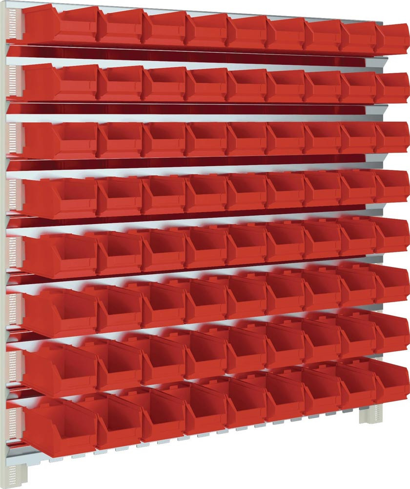 Sichtlagerkastenset H1000xB1010xT180mm Stahl verzinkt mit Sichtlagerkästen 72 x MK5 rot