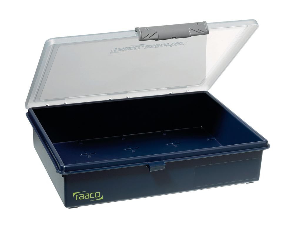 Sortimentskasten Assorter 55 4x4-0 B.241xT.195xH.56mm o.Fächer f.Einsätze der H.47mm Unterteil dkl.-blau/Deckel transp. a.PP
