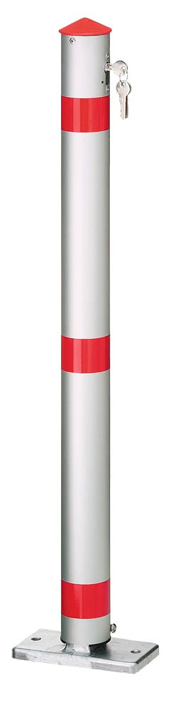 Sperrpfosten aus Alu, rund Durchm. 76 mm, mit 3 roten Ringen, zum Aufschrauben, kippbar, mit Profil-Zylinderschloß