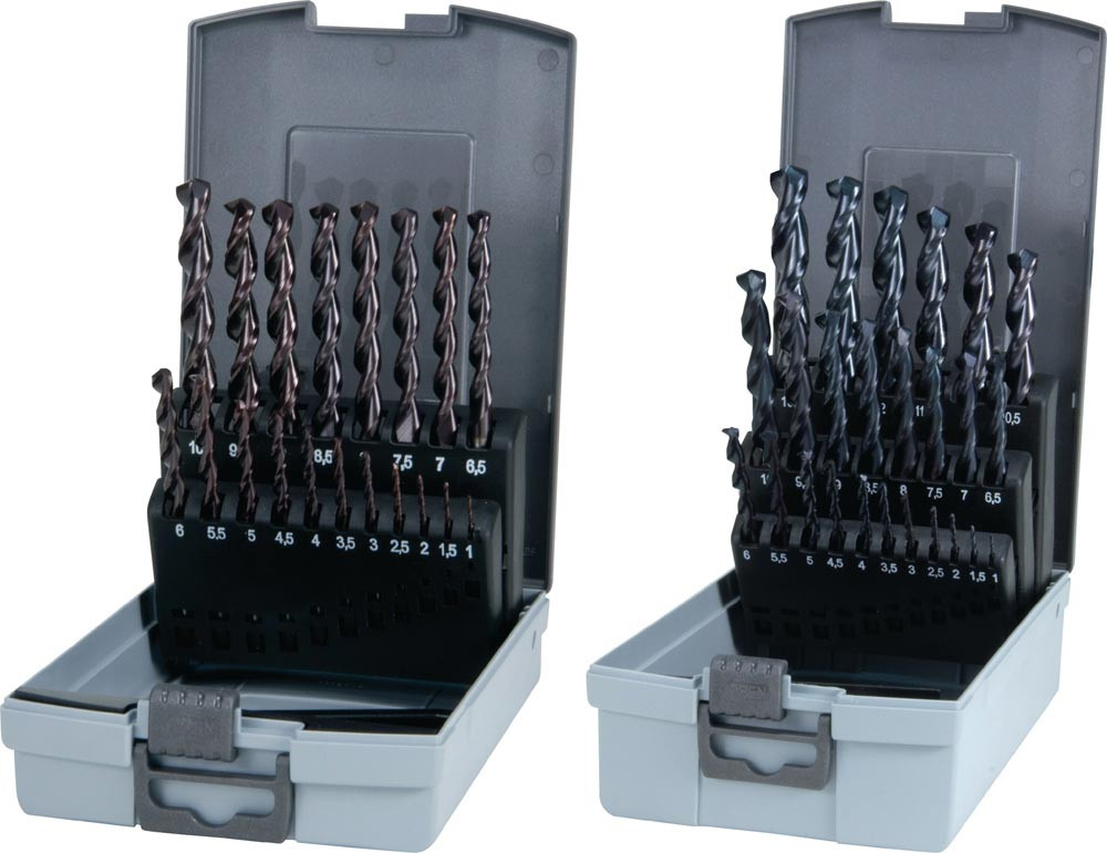 DIN 338 · Typ N · profilgeschliffen · rechtsschneidend · mit Zylinderschaft · Hochleistungsbohrer für alle normalen Bohrarbeiten in Stahl (bis 1200 N/mm²) und Guss · in Kunststoffkassette