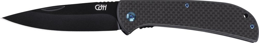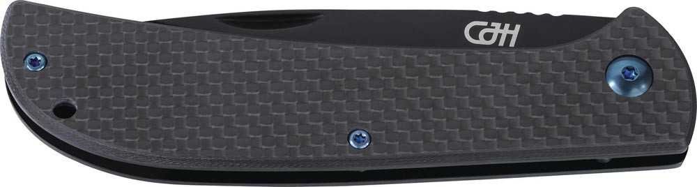 Carbon-Griffschale · Klinge schwarz beschichtet aus rostfreiem Stahl 420 · Framelock · Gürtelclip
