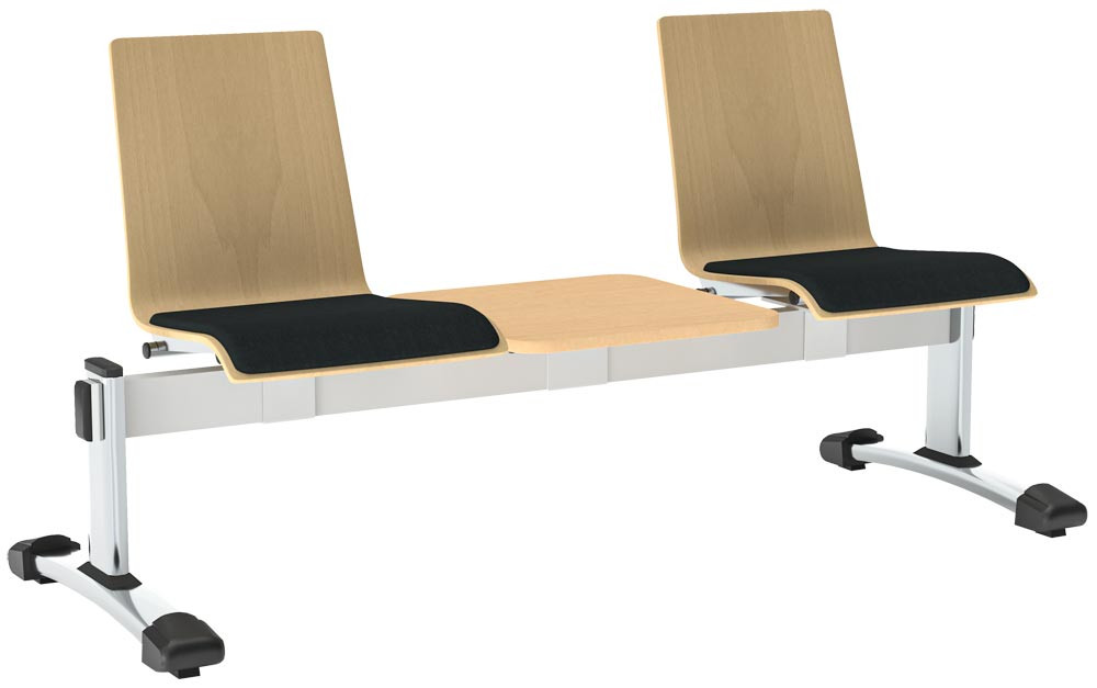∙ Mit 2,3 oder 4 Sitzelementen ∙ Integrierter Ablagetisch ∙ Tischplatte in Buchedekor mit ABS-Umleimer ∙ Sitzschalen aus 4-lagigem Buchenschichtholz, Stärke 4,5 mm ∙ Sitzpolster: Stärke 10 mm